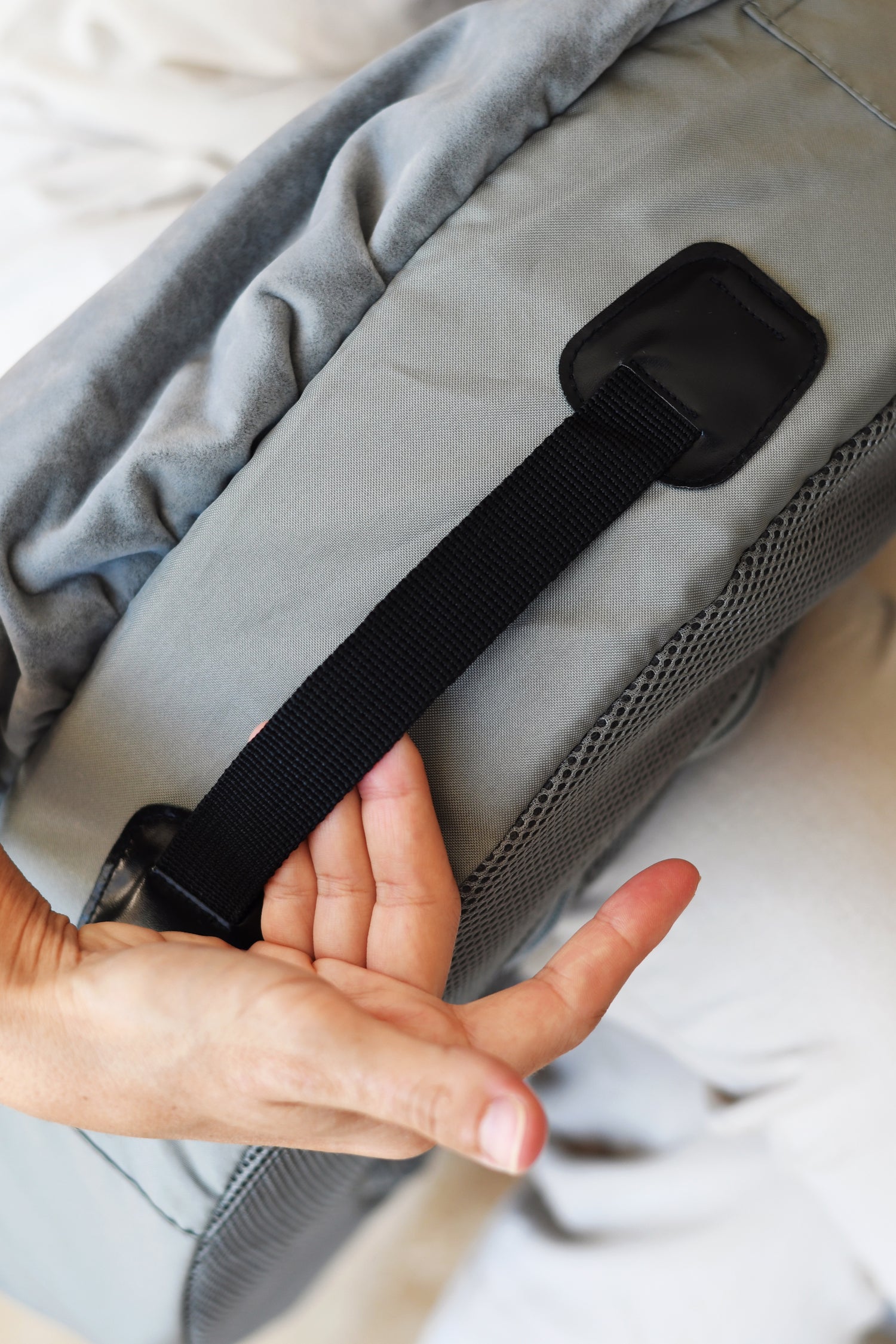 A back support strap on the COZYfix nursing pillow is an adjustable strap that wraps around your back to provide additional support and stability while feeding your baby. It helps to keep the nursing pillow securely in place, preventing it from shifting or sliding around as you nurse your baby. The strap is adjustable to accommodate different body sizes and shapes, allowing you to find the most comfortable and supportive fit. This back support strap can help reduce strain on your back and shoulders, making feeding sessions more comfortable for both you and your baby.